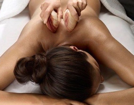 Putovanje u raj može započeti nanošenjem mirisnog ulja za masažu na Vaše tijelo, a potom i masažom zagrijanim ili rashlađenim školjkama koje terapeut drži u dlanovima. Duboki i dugi pokreti oslobađaju mišiće napetosti, dok kombinacija topline ili hlađenja i glatke površine školjki pruža osjećaj potpune relaksacije.